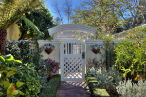Ultimate Gated Turnkey Home. Located near the coveted Butterfly Beach, shops and restaurants on Coast Village Road, and next door to Montecito's Music Academy of the West. High beamed ceilings, beautiful custom windows and wide French doors, leading from the living room and the spacious ground floor master bedroom to the landscaped courtyard.